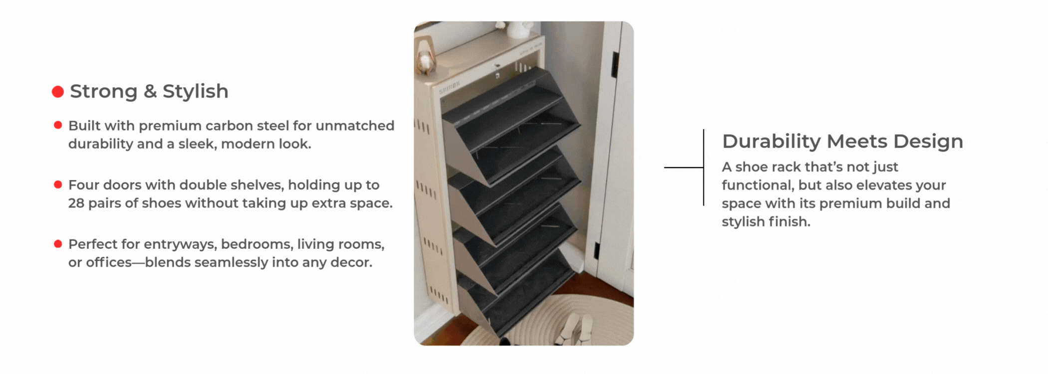 - Suitable For - Home, Office, Entryway / Hallway, Bedroom, Living Room (for Decorative or Frequently Used Shoes), Under the Staircase, Balcony or Porch